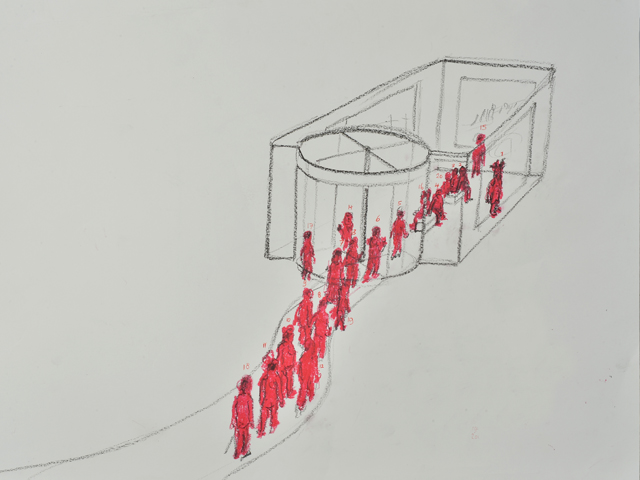 The artists represented by the sculptures were individuals in the extreme during their time. They struggled with their own existence and identity. Through this installation, they tear down differences and act as strong group and share a goal. They represent the same direction.